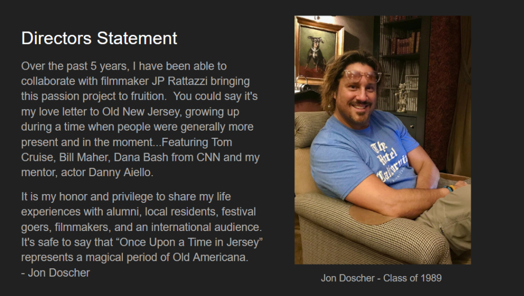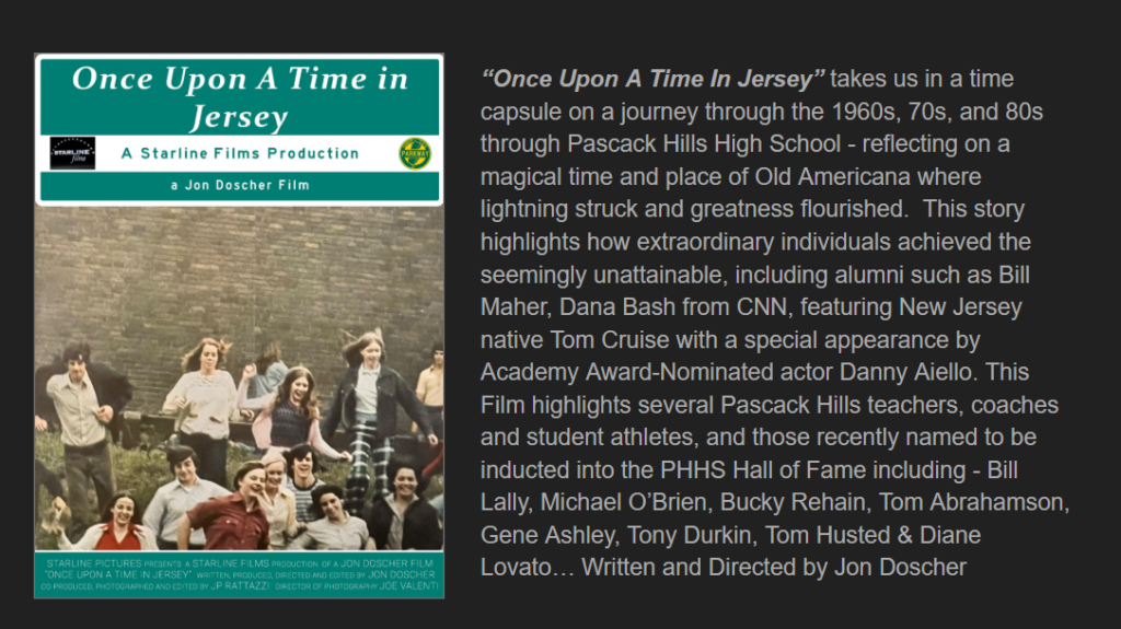 ‘Once Upon A Time In Jersey’ takes us in a time capsule on a journey through the 1960s, 70s, and 80s in New Jersey – reflecting on a magical time and place of Old Americana where lightning struck and greatness flourished. This story highlights how extraordinary individuals achieved the seemingly unattainable, featuring figures such as Tom Cruise, Bill Maher, and Dana Bash from CNN, with a special appearance by Academy Award-Nominated actor Danny Aiello, in his final performance.